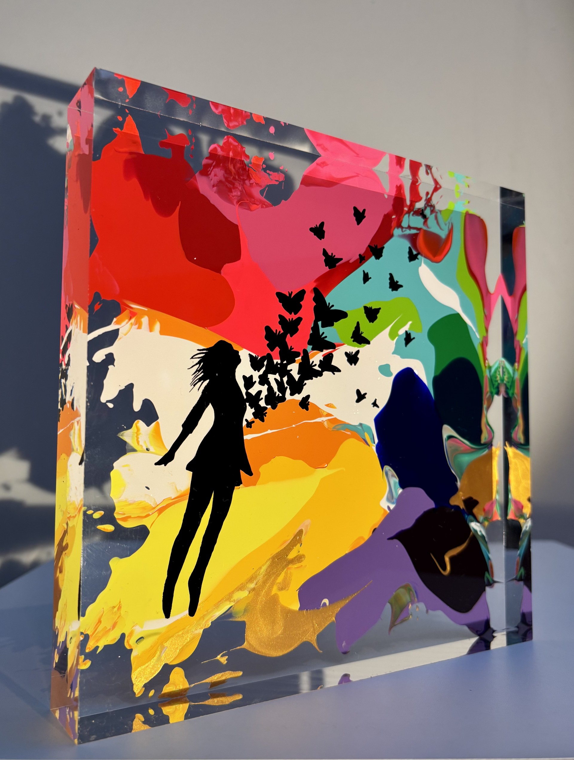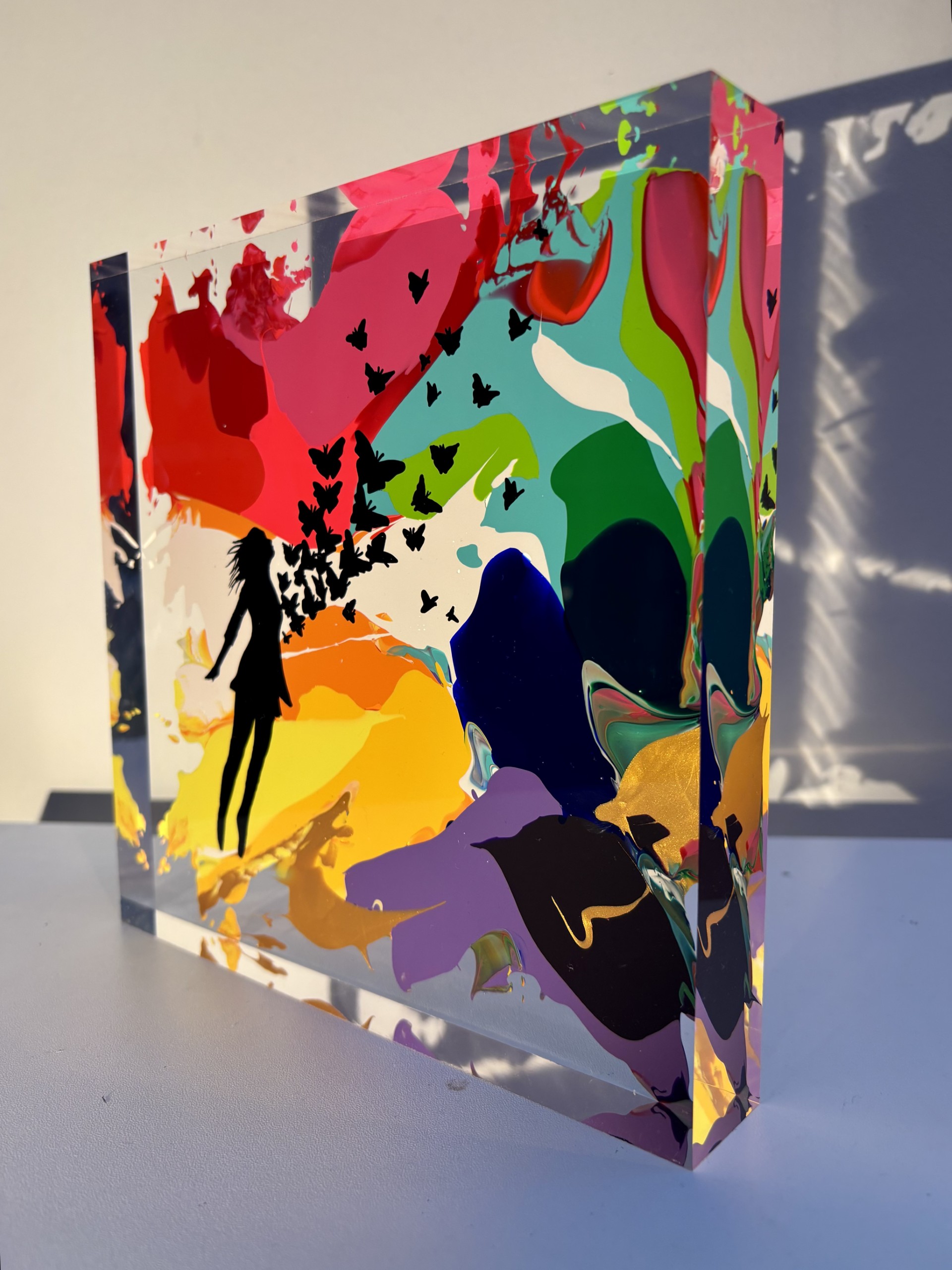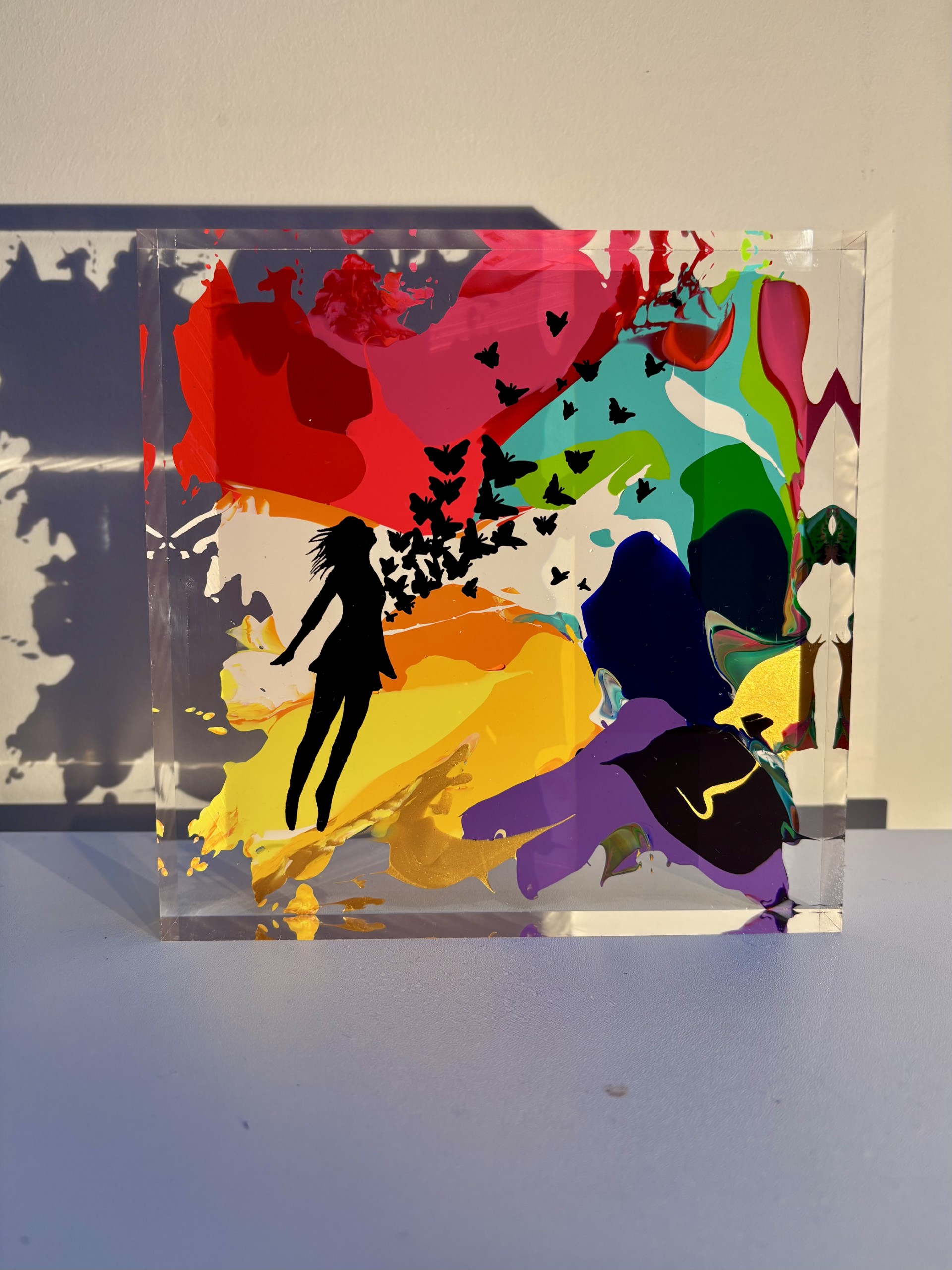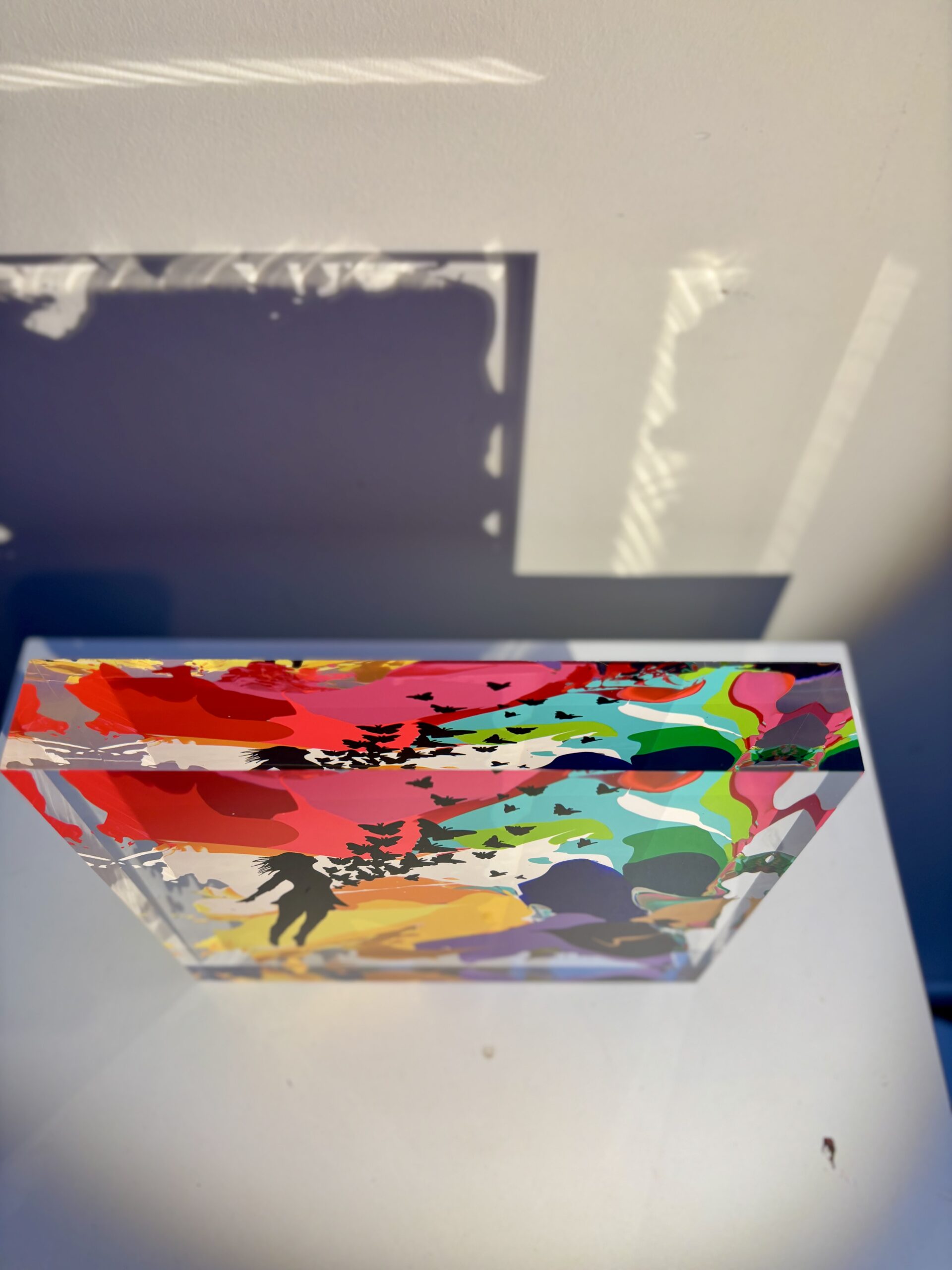 • acryl op gepolijste plexi, aan de achterkant geschilderd in spiegelbeeld
