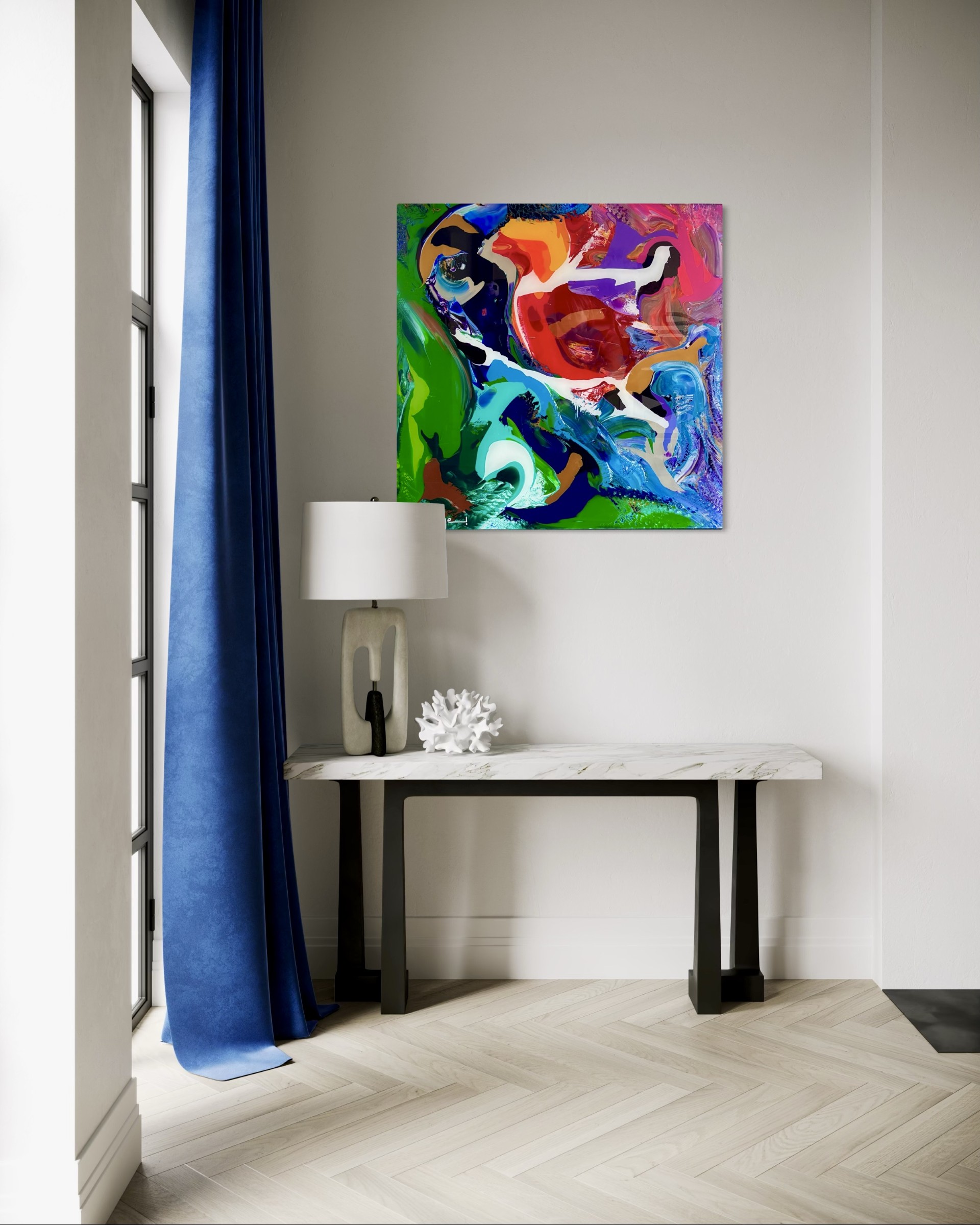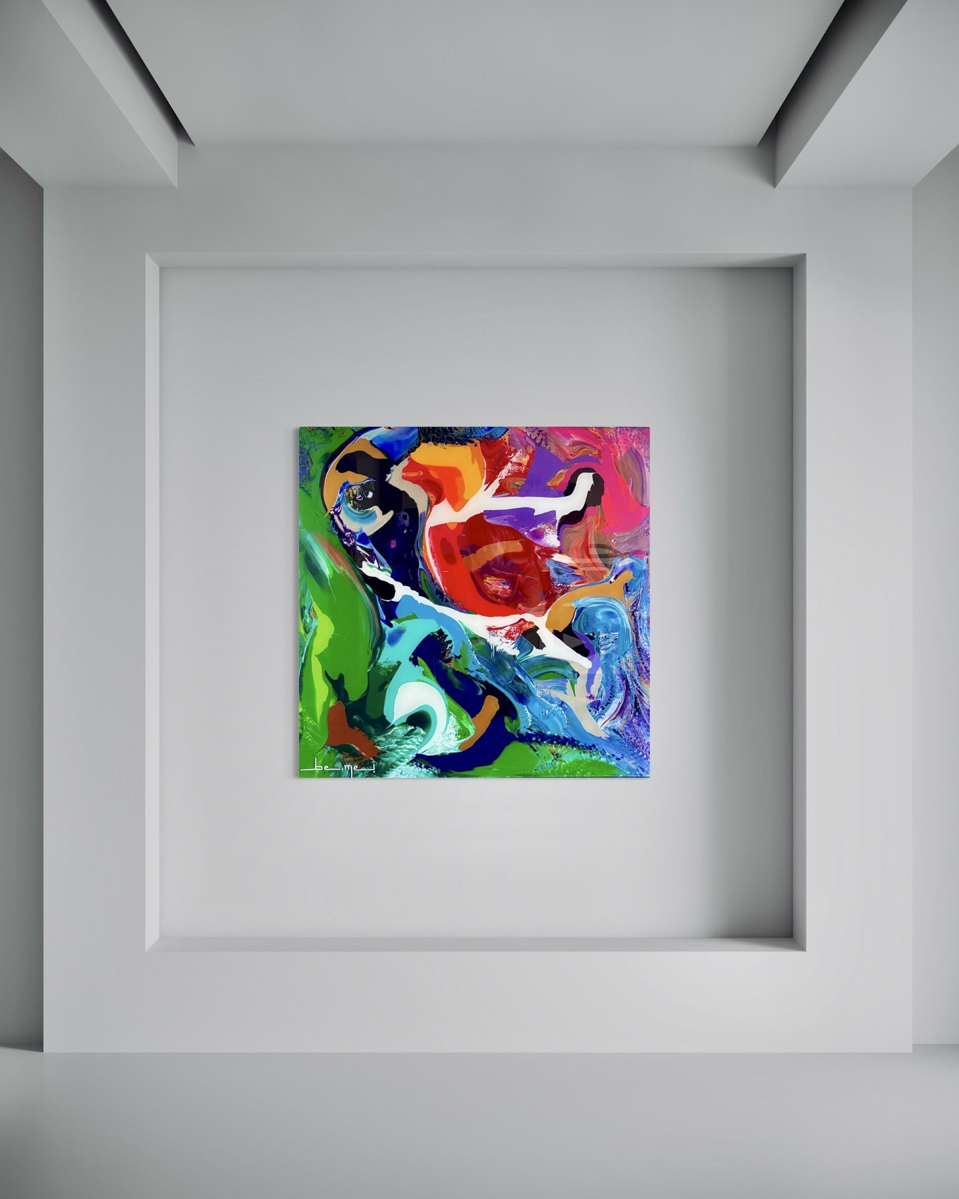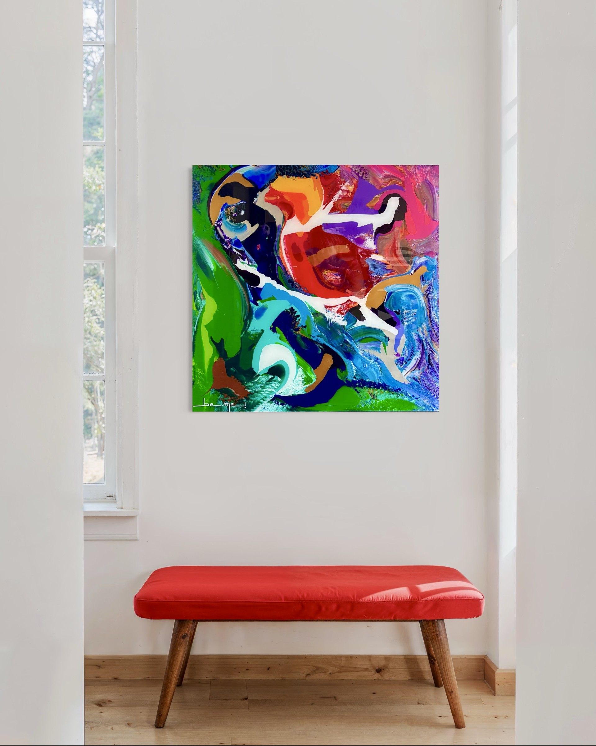 > Origineel en uniek schilderij op Plexiglas, rechtstreeks op de achterkant geschilderd (in spiegelbeeld).